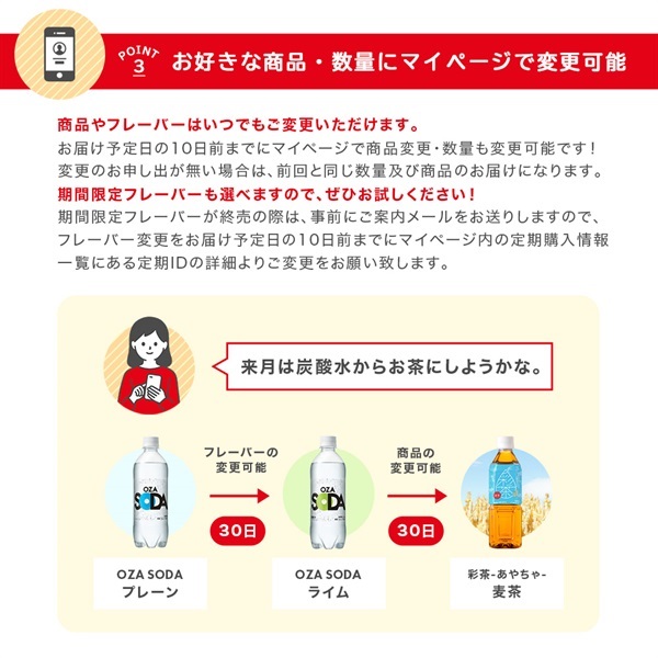 お届け予定日の10日前までにマイページで商品変更・数量も変更可能です!