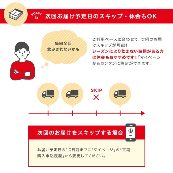 ご利用ペースに合わせて、次回のお届けスキップが可能!
